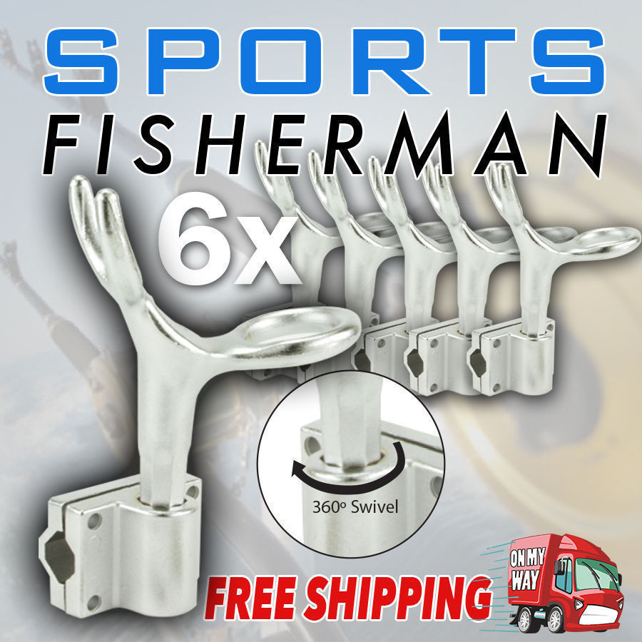 6x Alloy Rod Holder - Strong Marine Cast Aluminium Fishing with Rail Bracket Mount